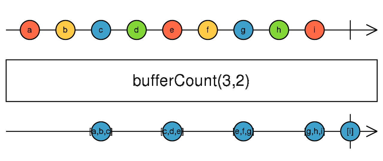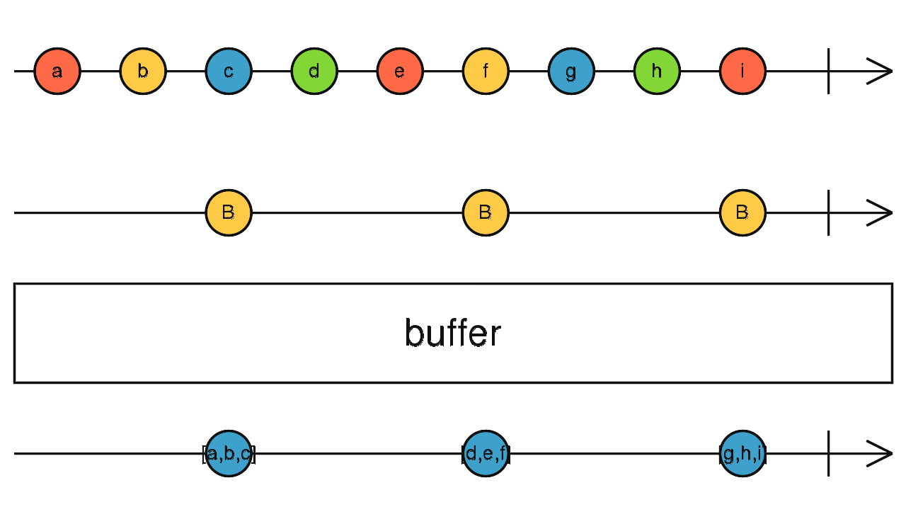 根據資料數量條件決定緩衝空間,當緩衝空間滿時,輸出包含緩衝資料的新Observable