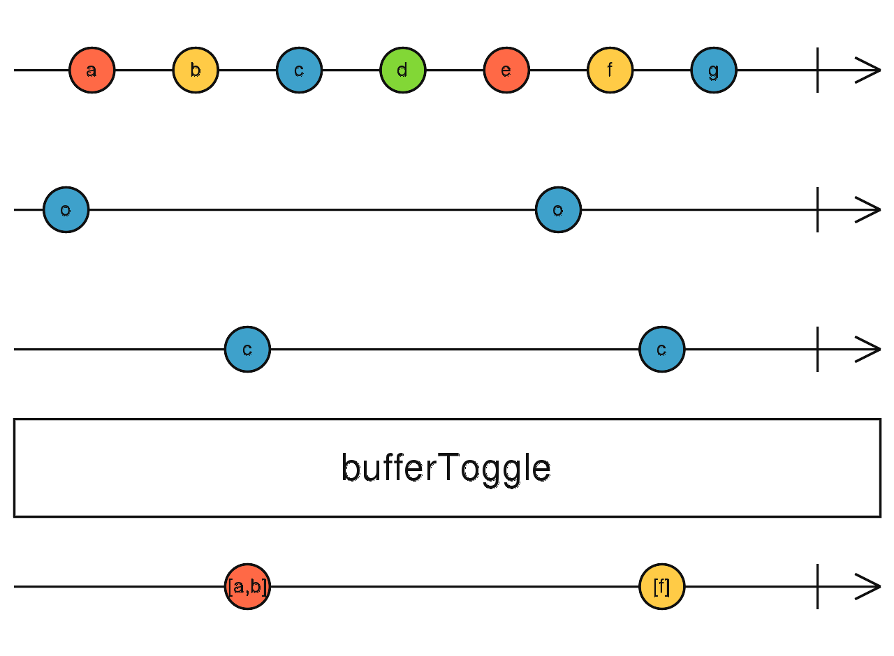 bufferToggle(openings: SubscribableOrPromise<O>, closingSelector: function(value: O): SubscribableOrPromise): Observable<T[]>