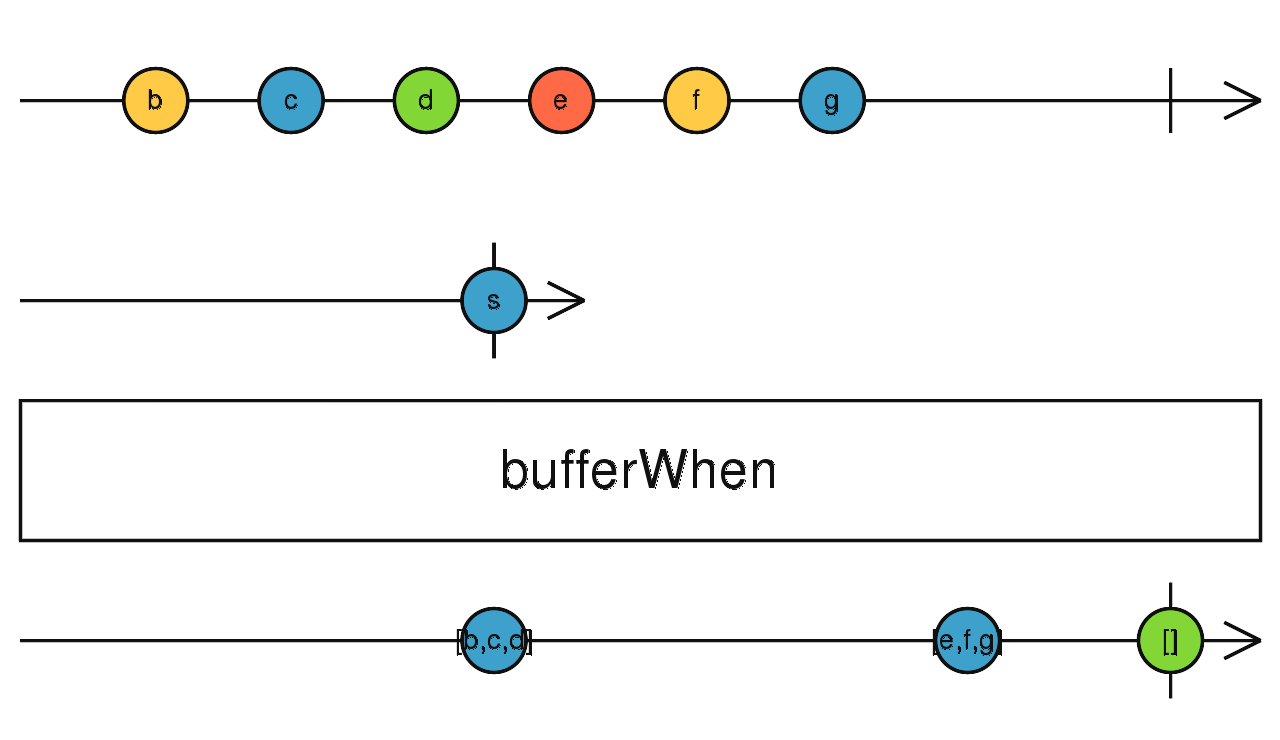 根據 Observable 條件決定緩衝空間,當緩衝空間滿時,則輸出包含緩衝資料的新Observable