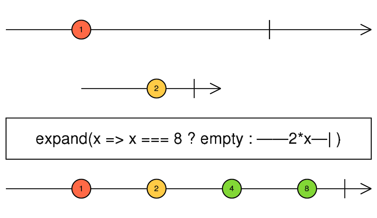 expand(project: function(value: T, index: number), concurrent: number, scheduler: Scheduler): Observable